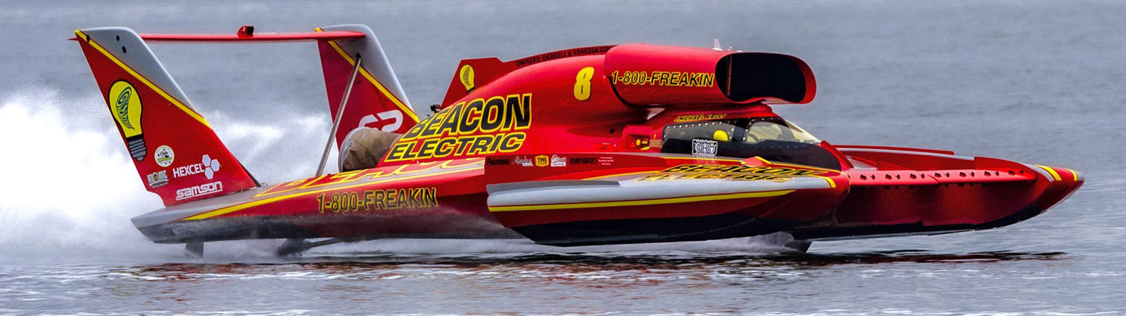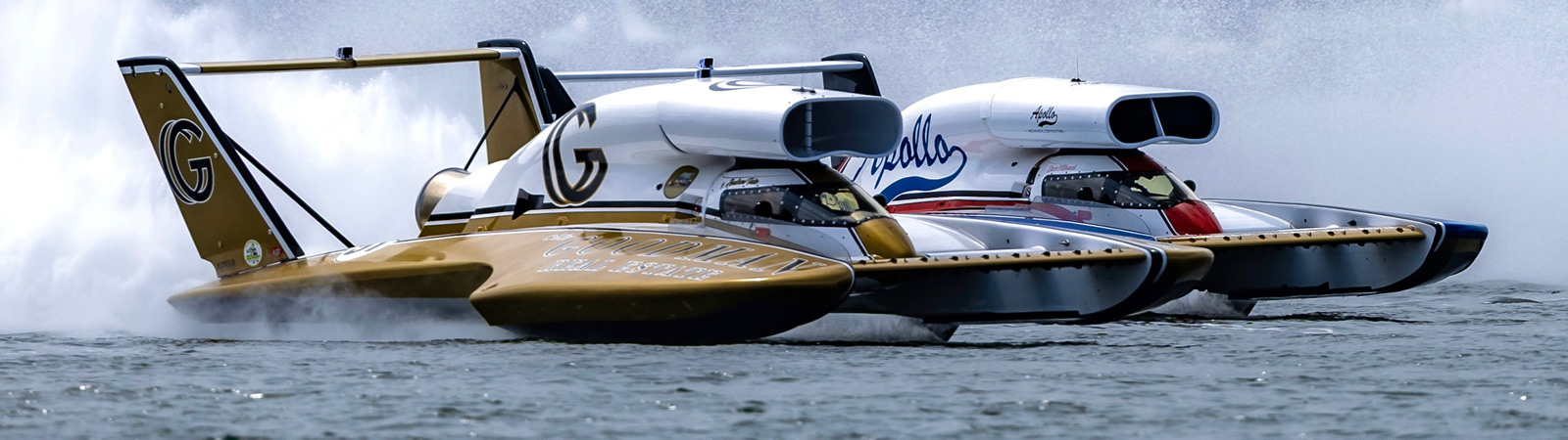 The Unlimiteds are powered by turbine-engines that produce around 3,000 horsepower – allowing our drivers to reach speeds of nearly 200 mph and producing a massive 60-foot tall, 300-foot long wall of water called a “roostertail” behind them. With very few restrictions, these majestic hydroplanes race in front of shorelines packed with fans on bodies of water throughout the United States.