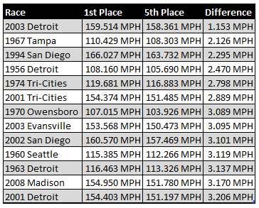 During the course of the day, a total of 109 laps were run by all teams and the session ended with less than 8 MPH covering the entire field, four teams clocking laps over 160 MPH and the top five boats separated by less than 4 MPH! Only 13 Times in H1 Unlimited qualifying history have the top 5 boats been split by a smaller margin: