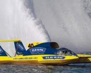 The Unlimiteds are powered by turbine-engines that produce around 3,000 horsepower – allowing our drivers to reach speeds of nearly 200 mph and producing a massive 60-foot tall, 300-foot long wall of water called a “roostertail” behind them. With very few restrictions, these majestic hydroplanes race in front of shorelines packed with fans on bodies of water throughout the United States.